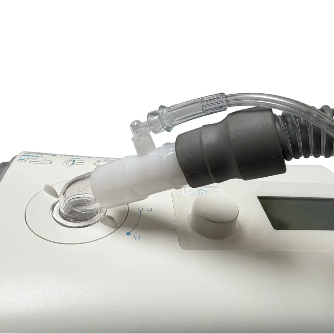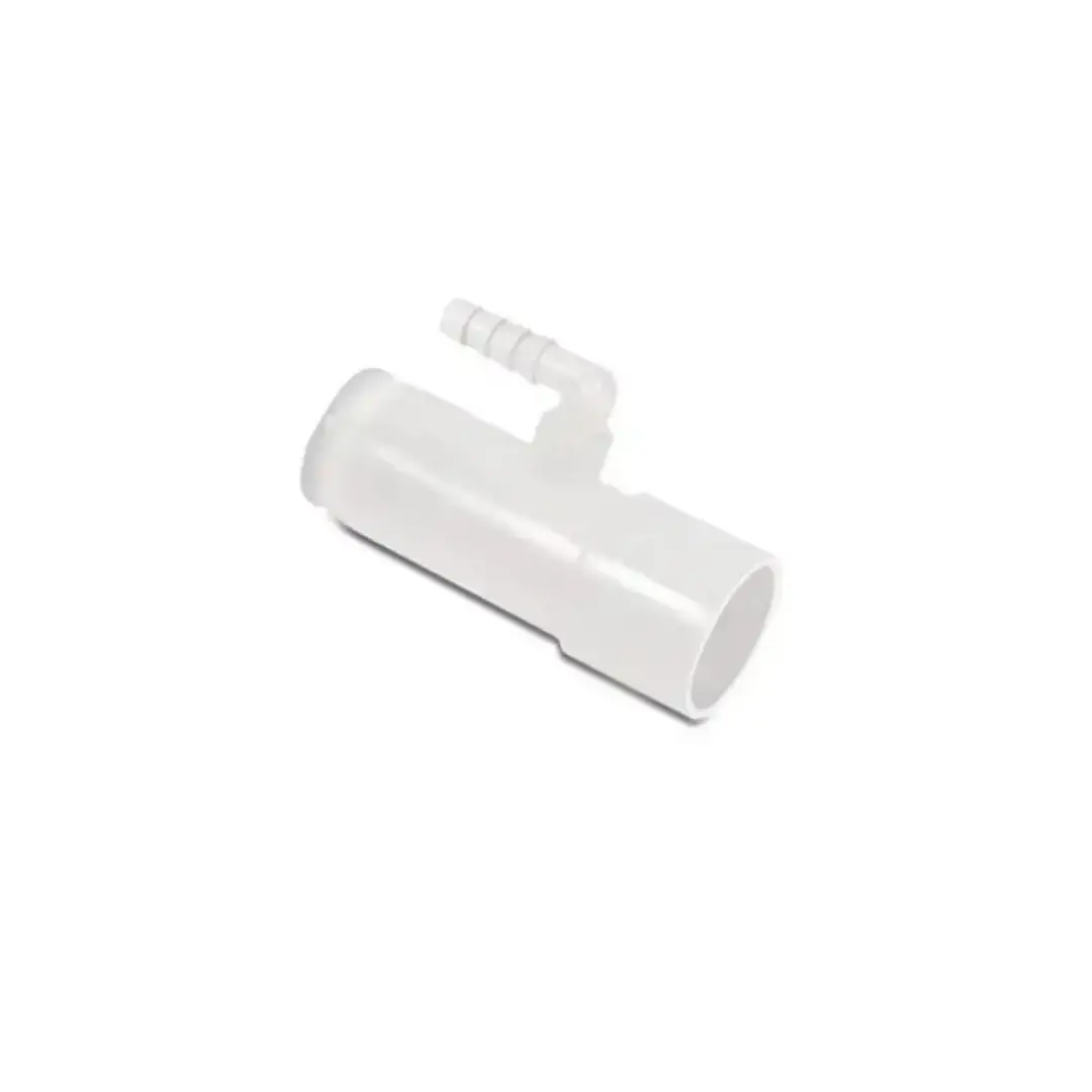 Used in conjunction with CPAP (Continuous Positive Airway Pressure) machines to introduce supplemental oxygen. Designed to connect oxygen tubing to a CPAP machine for supplemental oxygen delivery.